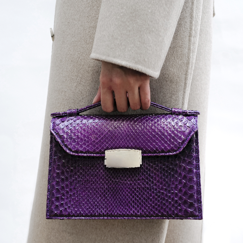 The Purple Cassiel Mini bag is rendered in Snakeskin. It is functional, sleek, and exquisite. It features a detachable shoulder strap. In addition, the internal bag features purple lambskin leather with an internal card pocket. You will be a fashion icon when you wear it on the street.