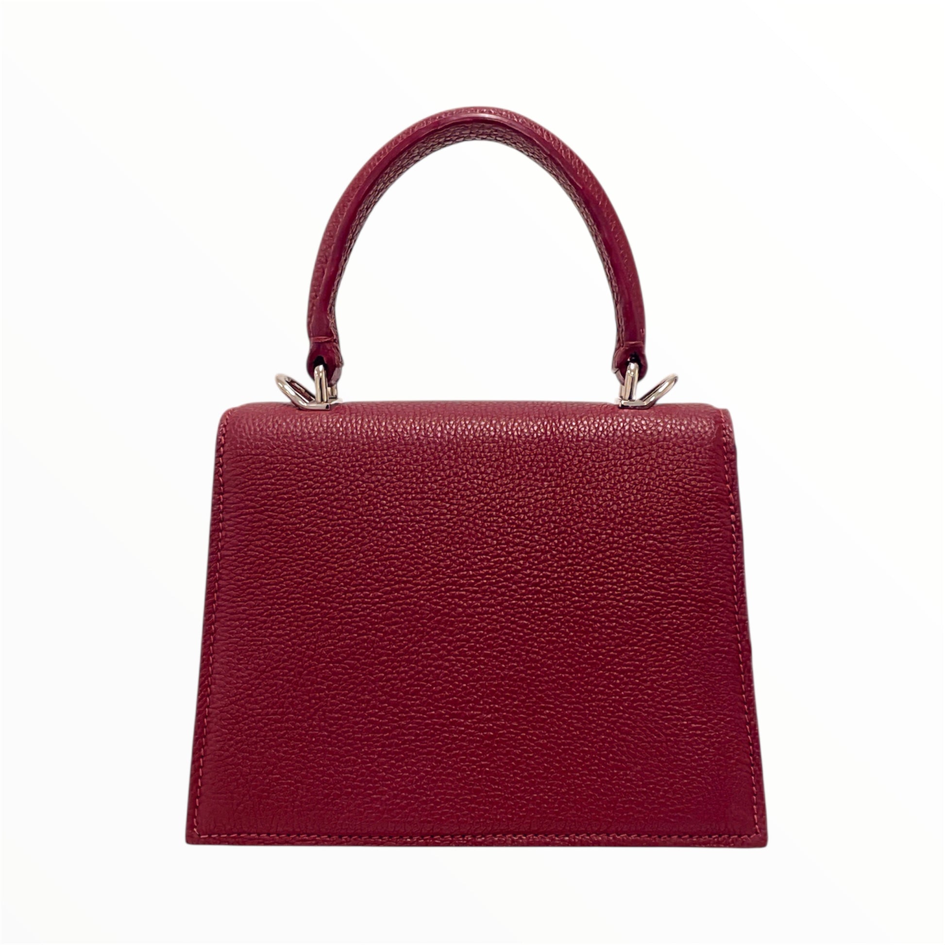 The Victoria Top Handle Bag in Burgundy is a stylish and sophisticated choice. Crafted from high-quality pebble leather, its medium size offers ample space while maintaining a sleek silhouette. The iconic burgundy colour adds a touch of elegance, making it a versatile addition to any outfit.